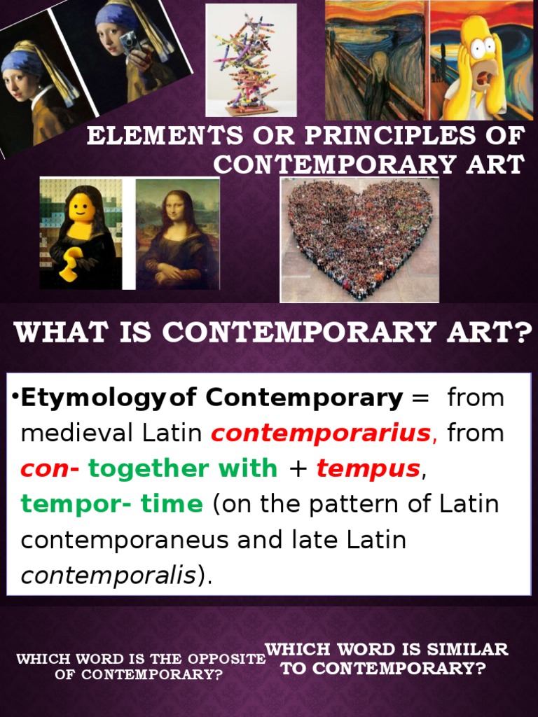 Contemporary art is an art of today produced by the artists of today. Individu sekarang terbiasa menggunakan internet di gadget untuk melihat video dan gambar data untuk. View CPAR-Lesson_2pdf from ARTS 12 at University of the Philippines Diliman. ELEMENTSPRINCIPLES OF CONTEMPORARY ART SPACE ELEMENTSPRINCIPLES OF CONTEMPORARY ART HYBRIDITY Usage of unconventional materials mixing of unlikely materials to produce an artwork.